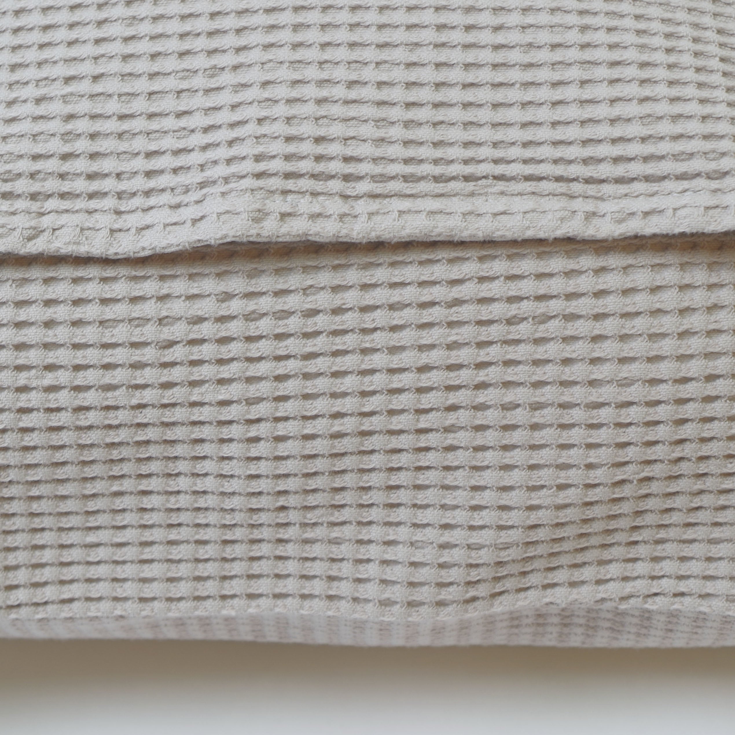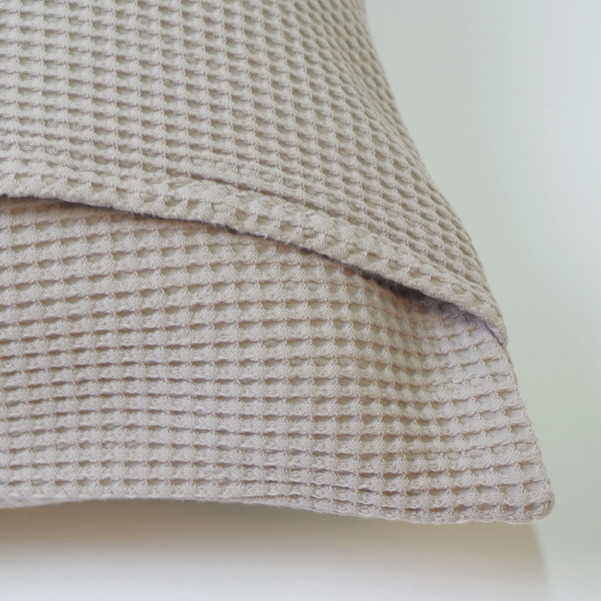 Funda para cojín con tramado de nido de abeja de algodón 100%. Tiene los colores perfectos para vestir tu casa en las épocas cálidas, en las que se recomienda recurrir a colores frescos y claros. Tejido con un acabado delavado que le aporta suavidad y un aspecto natural y agradable.