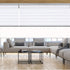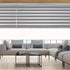 Estor enrollable doble en tejido de franjas transparentes cuyo movimiento vertical proporciona un decorativo y práctico juego de luz, así como el control de la visión exterior y la privacidad. Mecanismo con cajetín superior, cadeneta y contrapeso de aluminio.