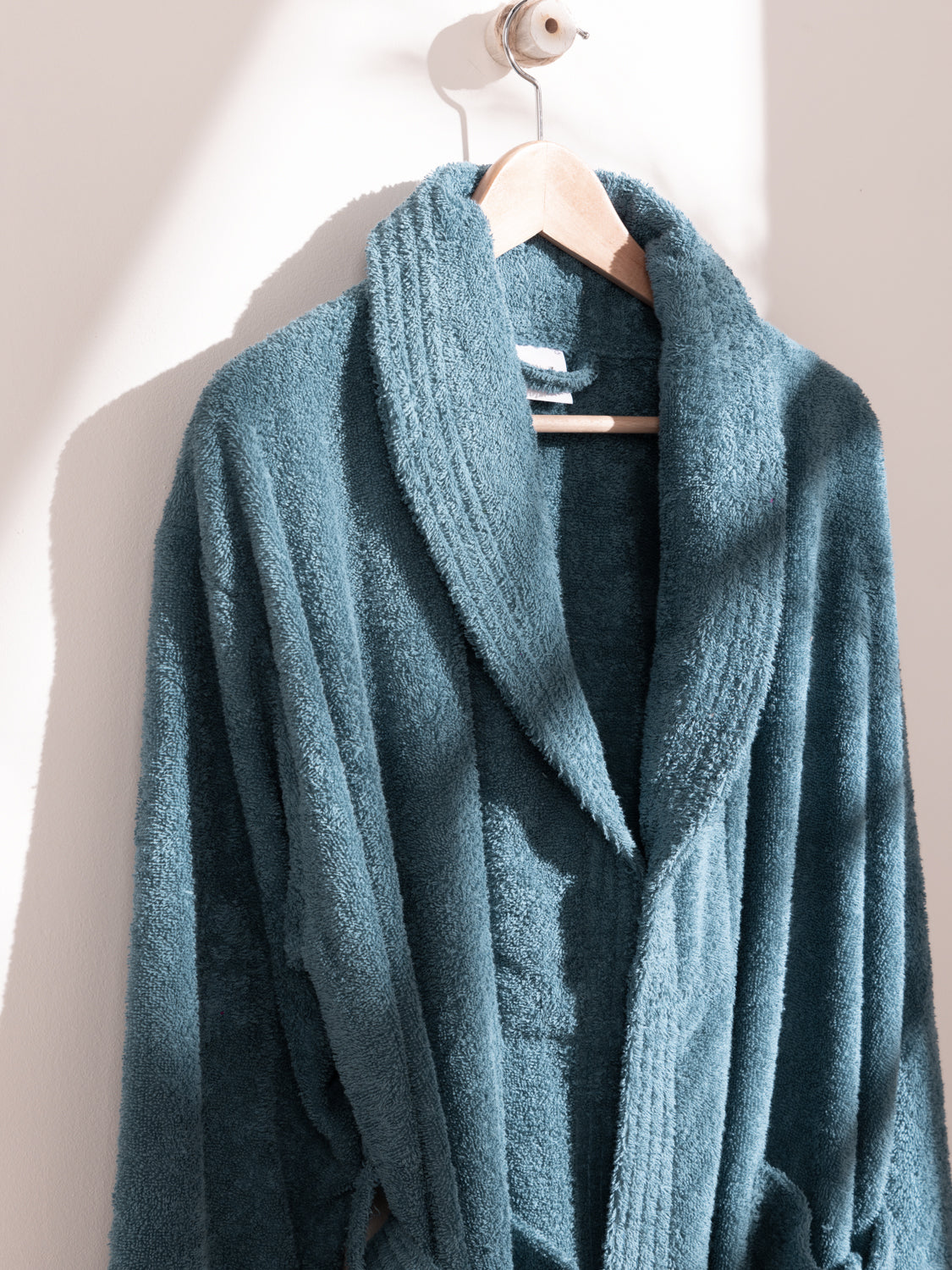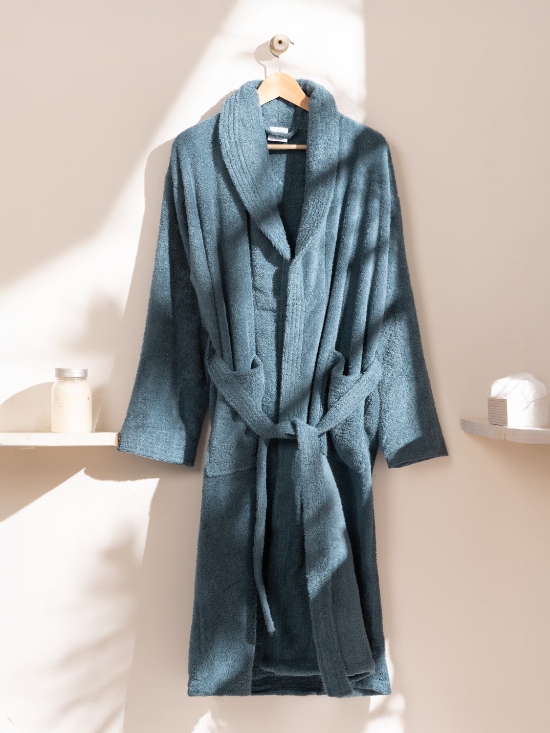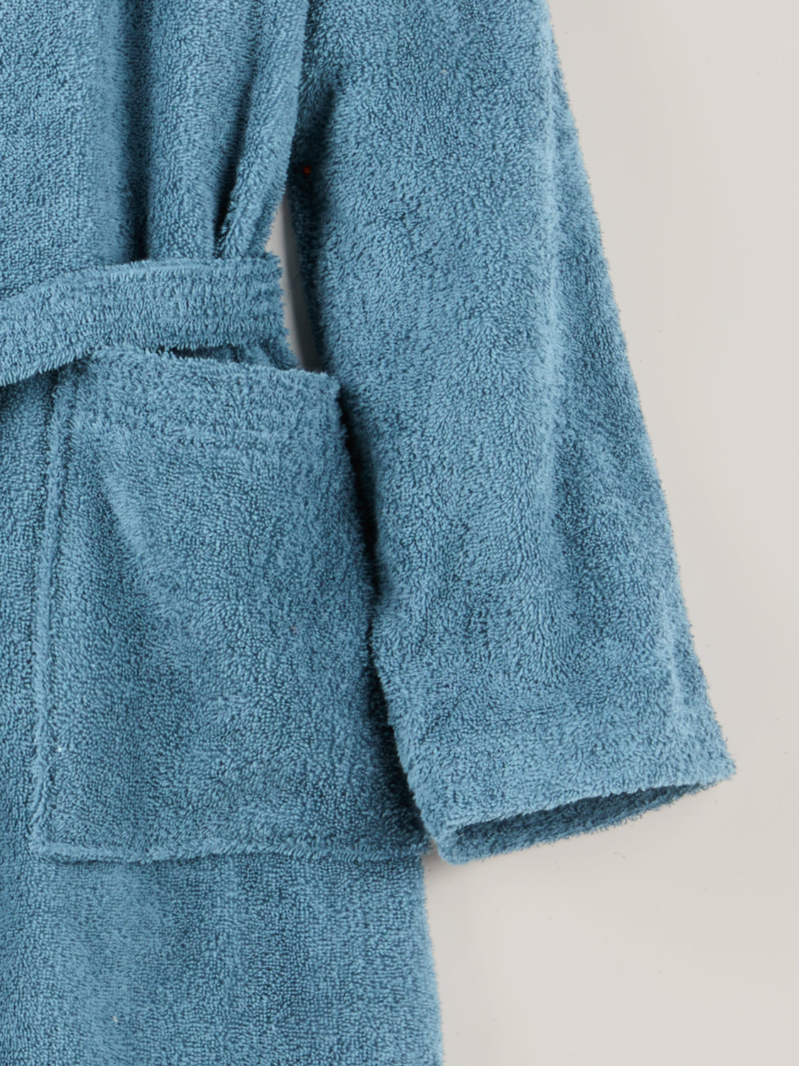 El albornoz clásico de rizo americano de color ultramar liso hará de tu ducha un momento aún más reconfortante. Una prenda mullida de lo más suave gracias a su composición 100% de algodón. El peso del albornoz es de 450 gr/m2, que te proporcionará un secado rápido y absorbente. Gracias a esta prenda podrás disfrutar de las mejores y más agradables duchas.