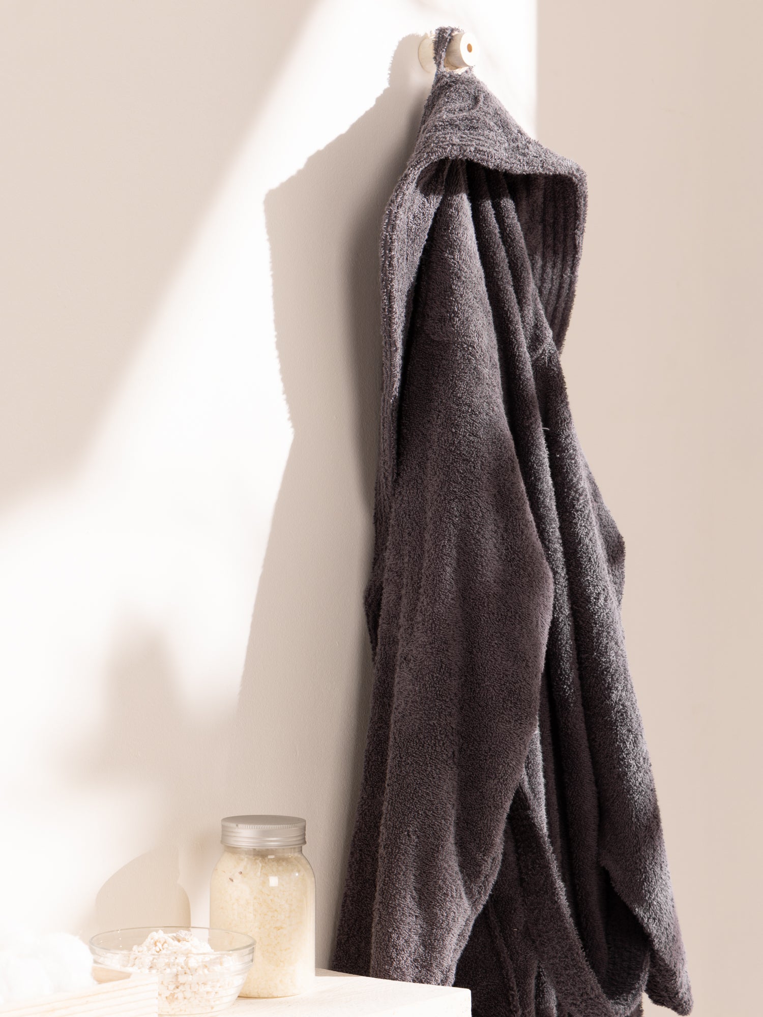 El albornoz clásico de rizo americano de color gris marengo liso hará de tu ducha un momento aún más reconfortante. Una prenda mullida de lo más suave gracias a su composición 100% de algodón. El peso del albornoz es de 450 gr/m2, que te proporcionará un secado rápido y absorbente. Gracias a esta prenda podrás disfrutar de las mejores y más agradables duchas.