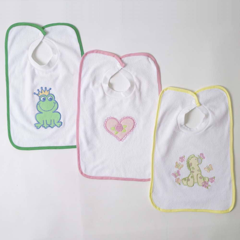 Set de 3 baberos bebé en rizo y aplique fantasía bordado.