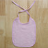 Babero de rizo en color liso y ribete con vivo al tono, con tiras para atar detrás del cuello.