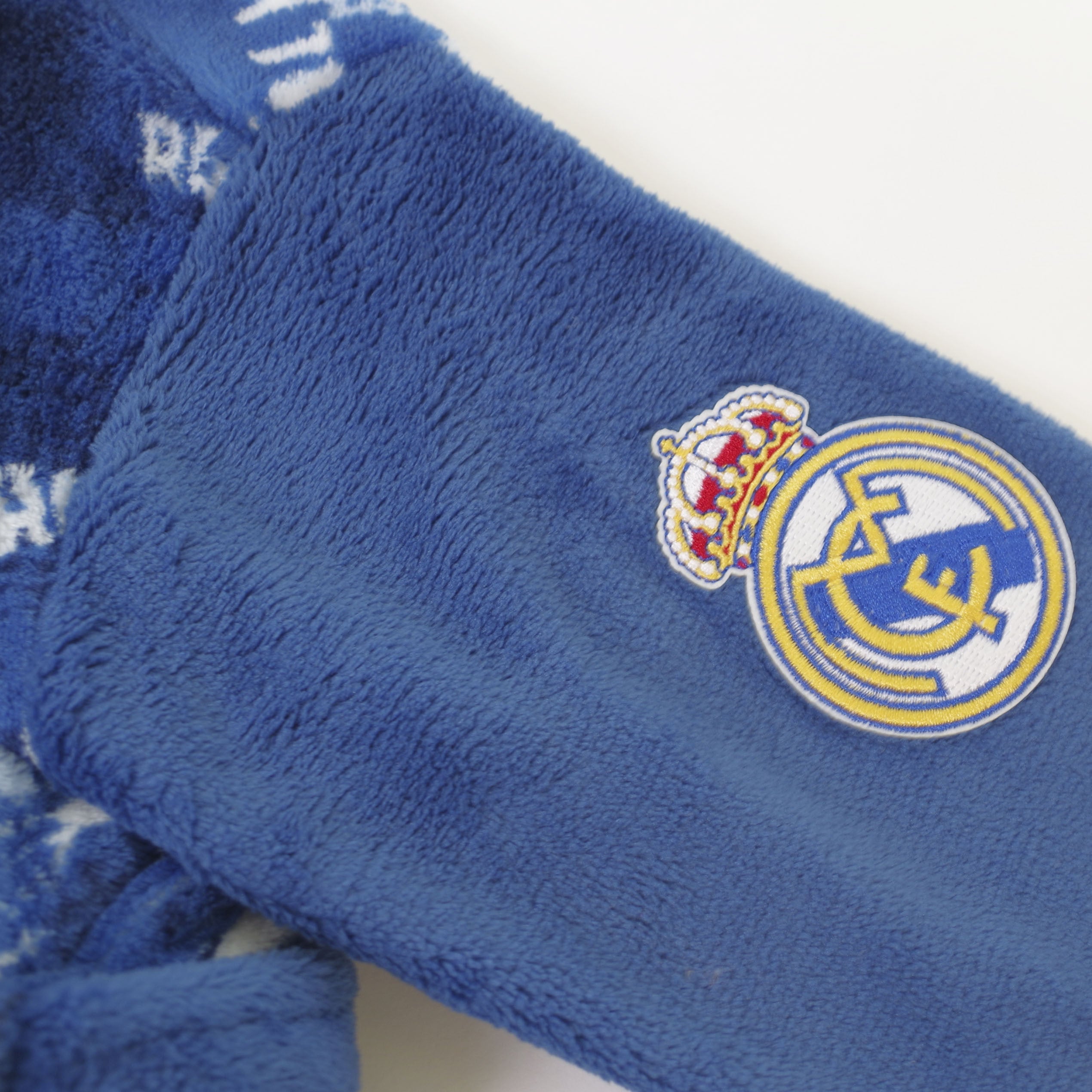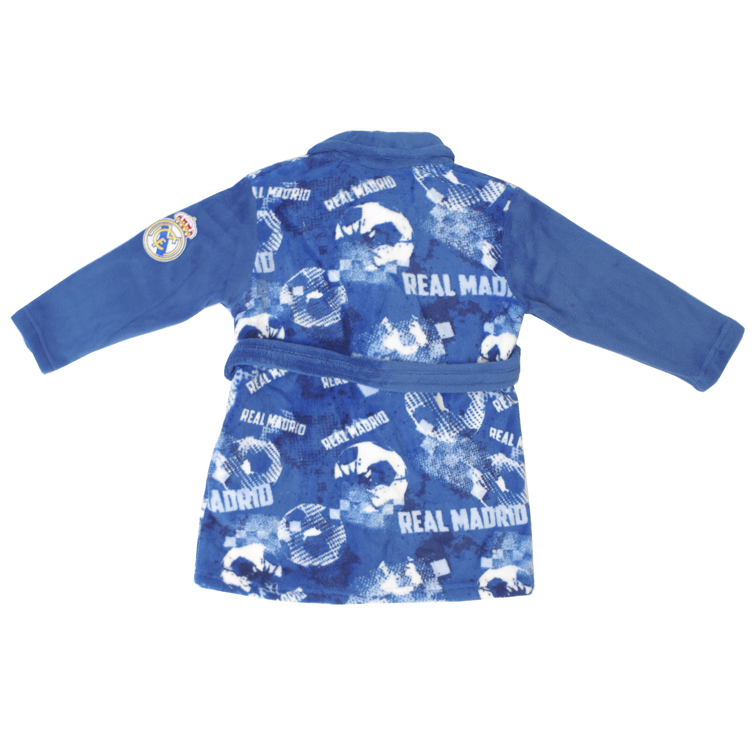 Bata de coralina de niño estampada con motivos del Real Madrid.