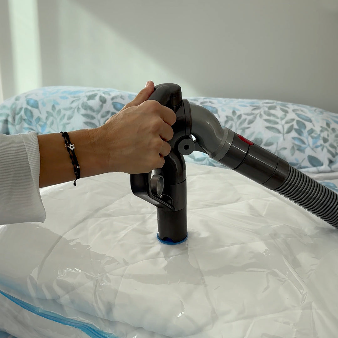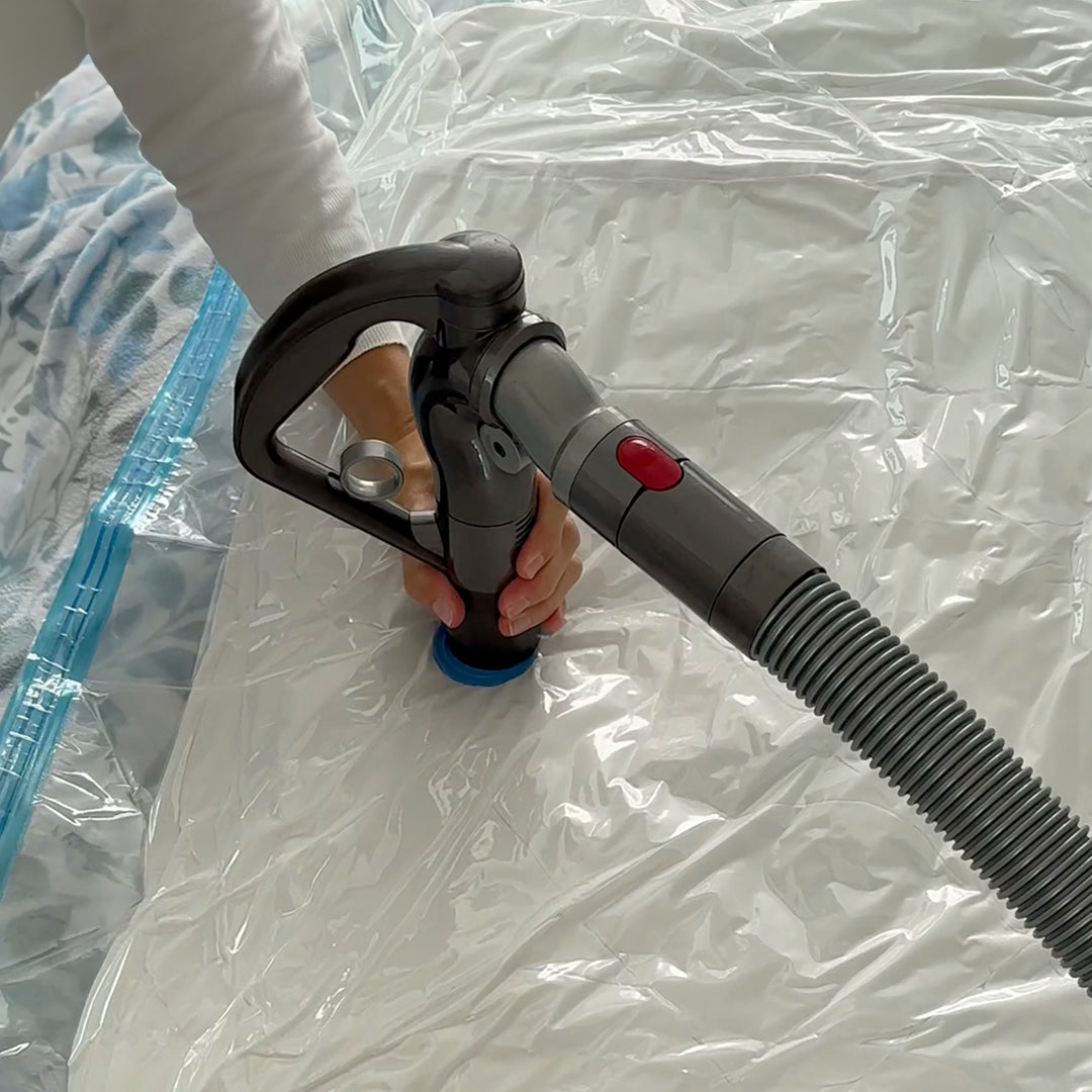 Las bolsas selladas al vacío ahorran espacio al comprimir eficazmente el volumen de prendas hasta un 80% para guardarlos de forma compacta.