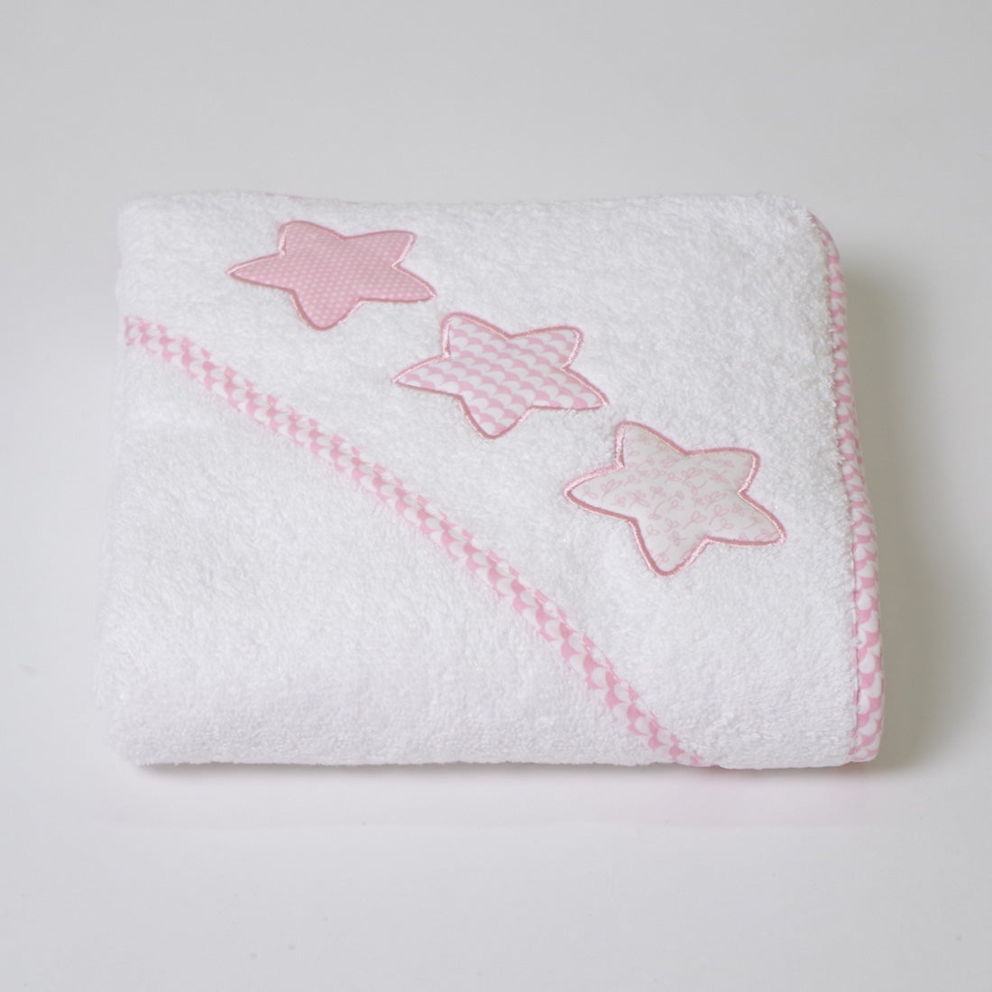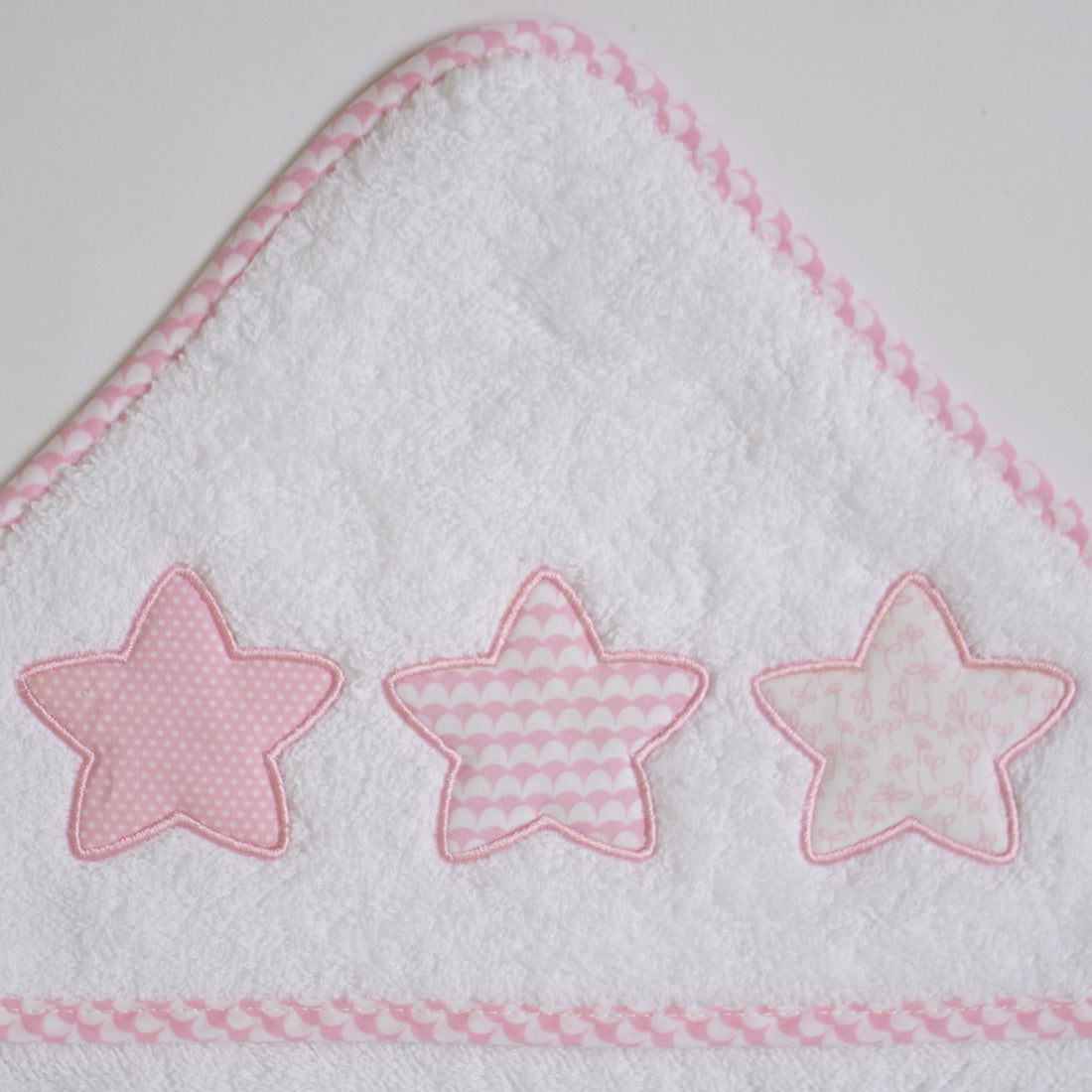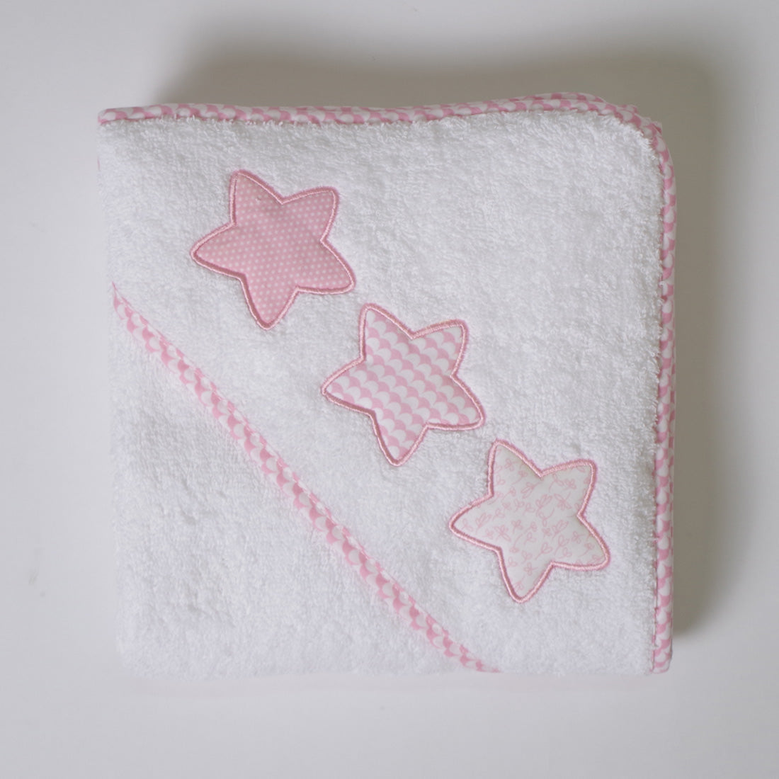 Capa de baño de rizo para bebé con bordado central y vivo alrededor.