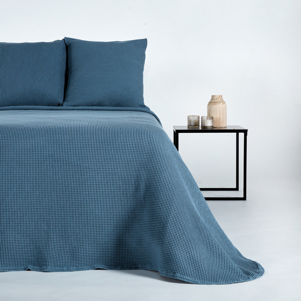 Viste tu cama de la manera más elegante pero con el aire fresco propio de las épocas de verano. Esta colcha de algodón 100% tiene los colores perfectos para vestir tu dormitorio en las épocas cálidas, en las que se recomienda recurrir a colores frescos y claros. Tejido con un acabado delavado que le aporta suavidad y un aspecto natural y agradable.