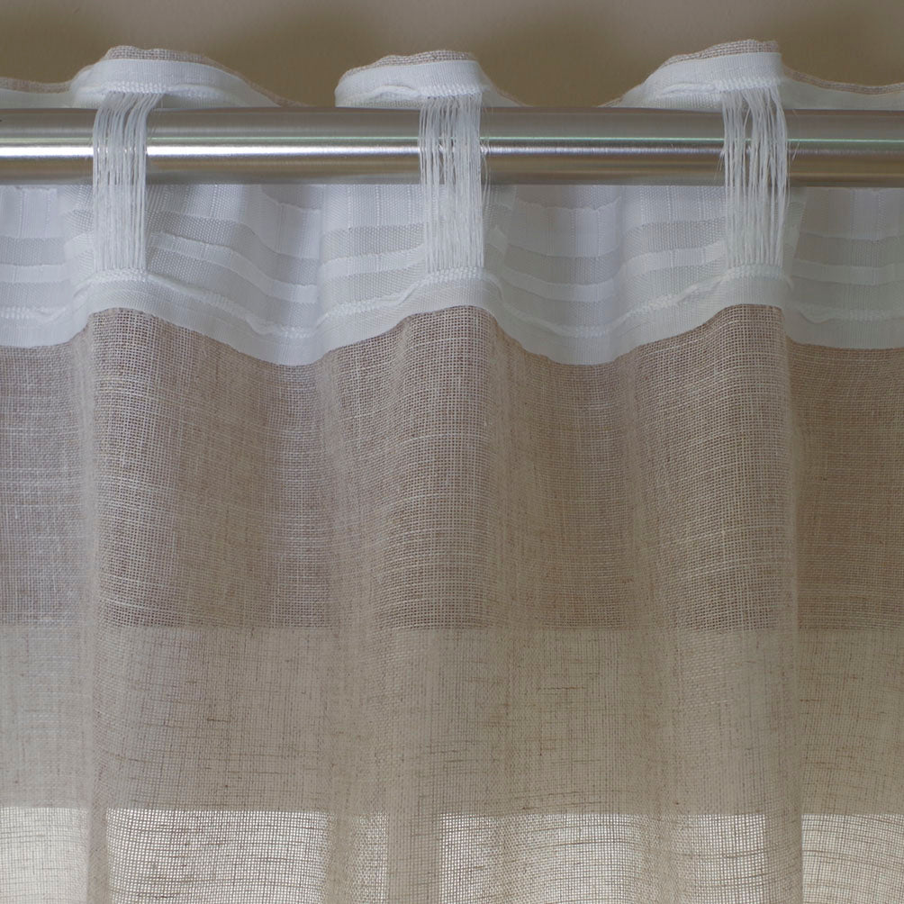 Esta cortina es de tela fina y semitransparente, permitiendo así el paso de la luz por sus ventanas de forma velada así como un mínimo de visibilidad a través de ella. Su tela da un toque de elegancia y frescura a su hogar.