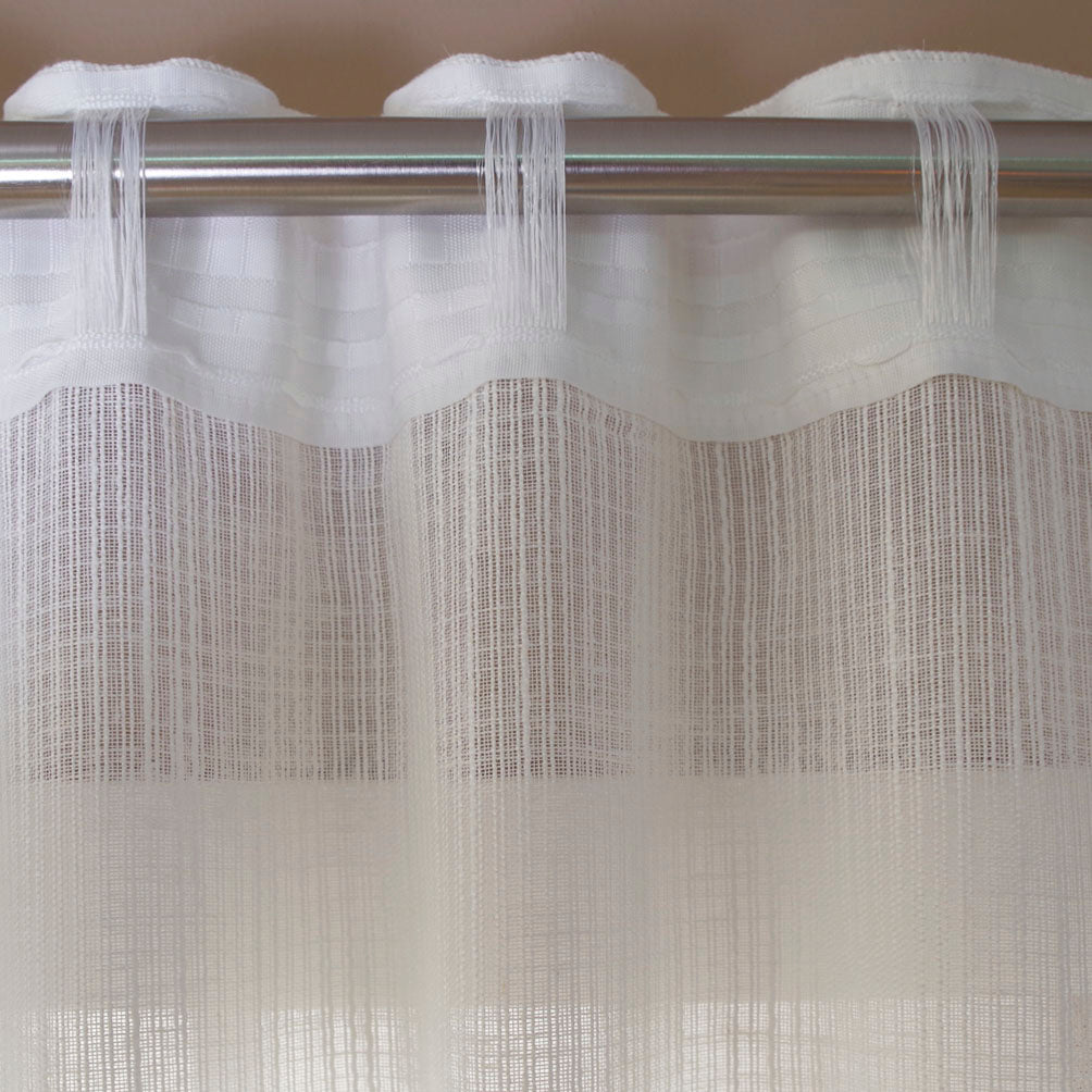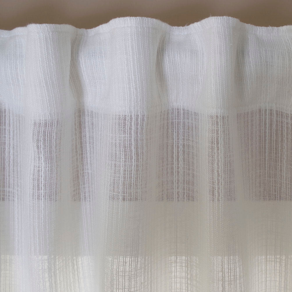 Esta cortina es de tela fina y semitransparente, permitiendo así el paso de la luz por sus ventanas de forma velada así como un mínimo de visibilidad a través de ella. Su tela da un toque de elegancia y frescura a su hogar.