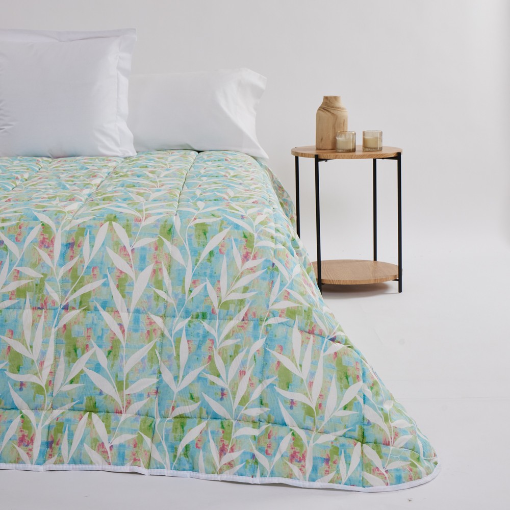 Edredón entero estampado y reverso liso.