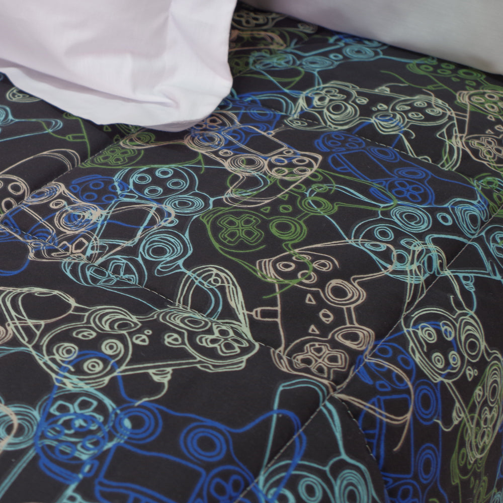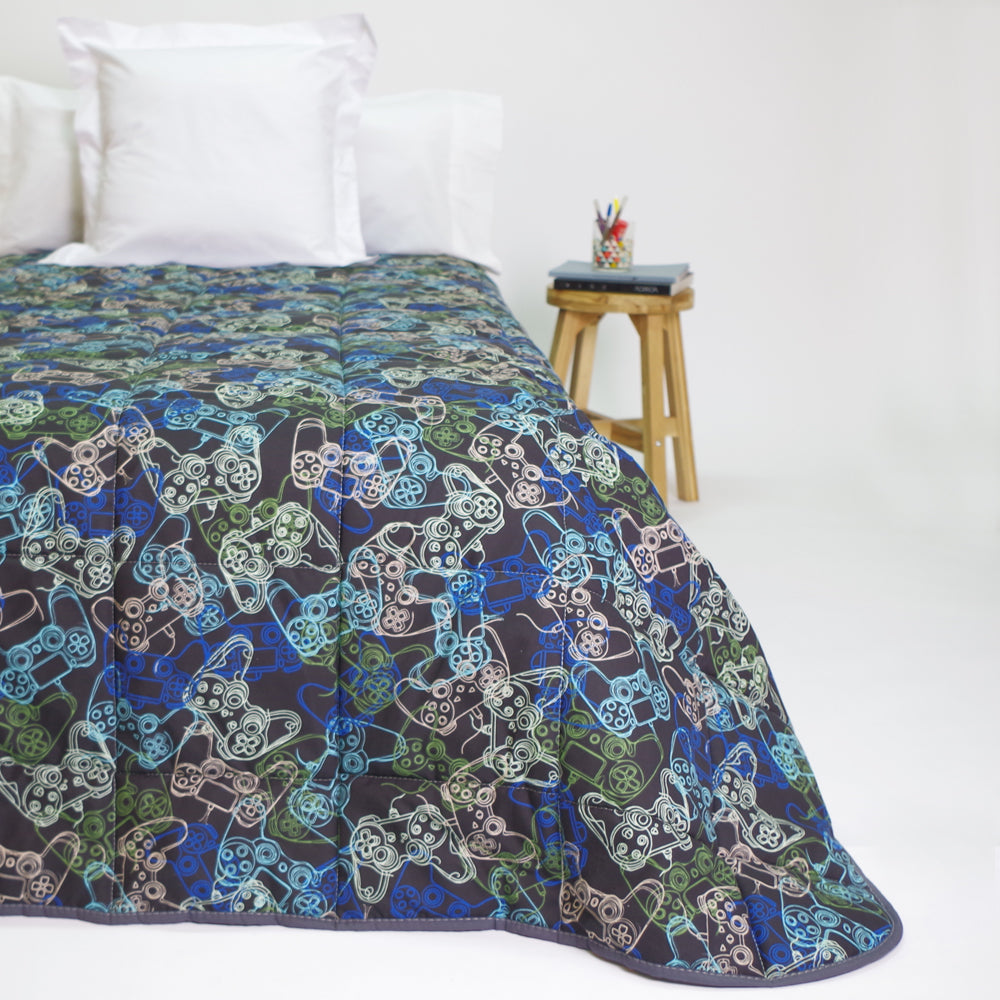 Edredón entero estampado y reverso liso.