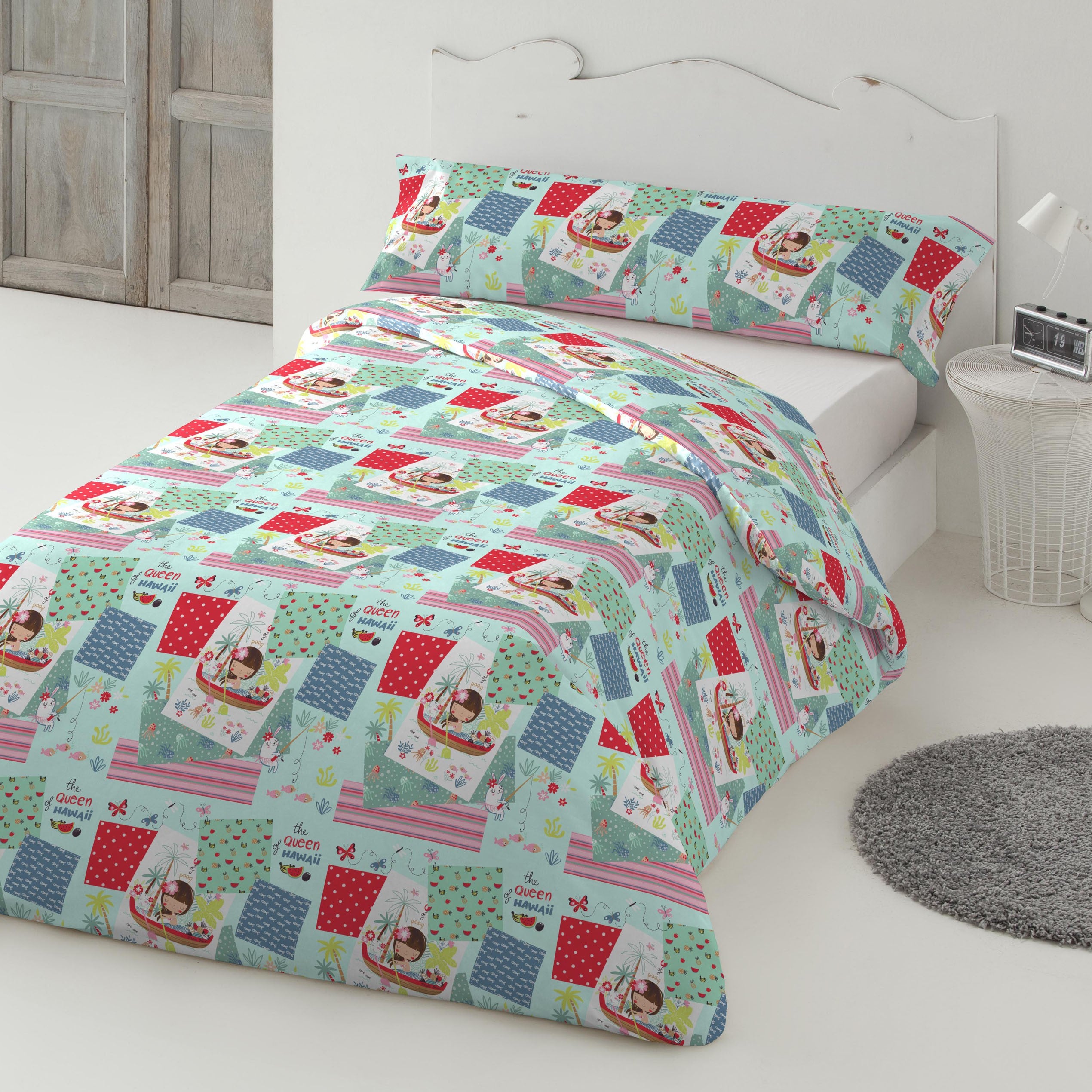 Déjate envolver por este divertido estampado HAWAI. Si quieres ser auténtica y ser la envidia de tus invitados, pues este diseño va perfecto para los más pequeños. Cuenta con dos caras estampadas. Está hecha con una mezcla perfecta de poliéster y algodón, lo cual aporta suavidad y mucha comodidad a la hora de dormir. Esta combinación también ayuda a facilitar el lavado y el manejo de la misma. Atrévete a darle una decoración única a tu dormitorio con esta bonita funda. Es ideal para las más peques de la casa.