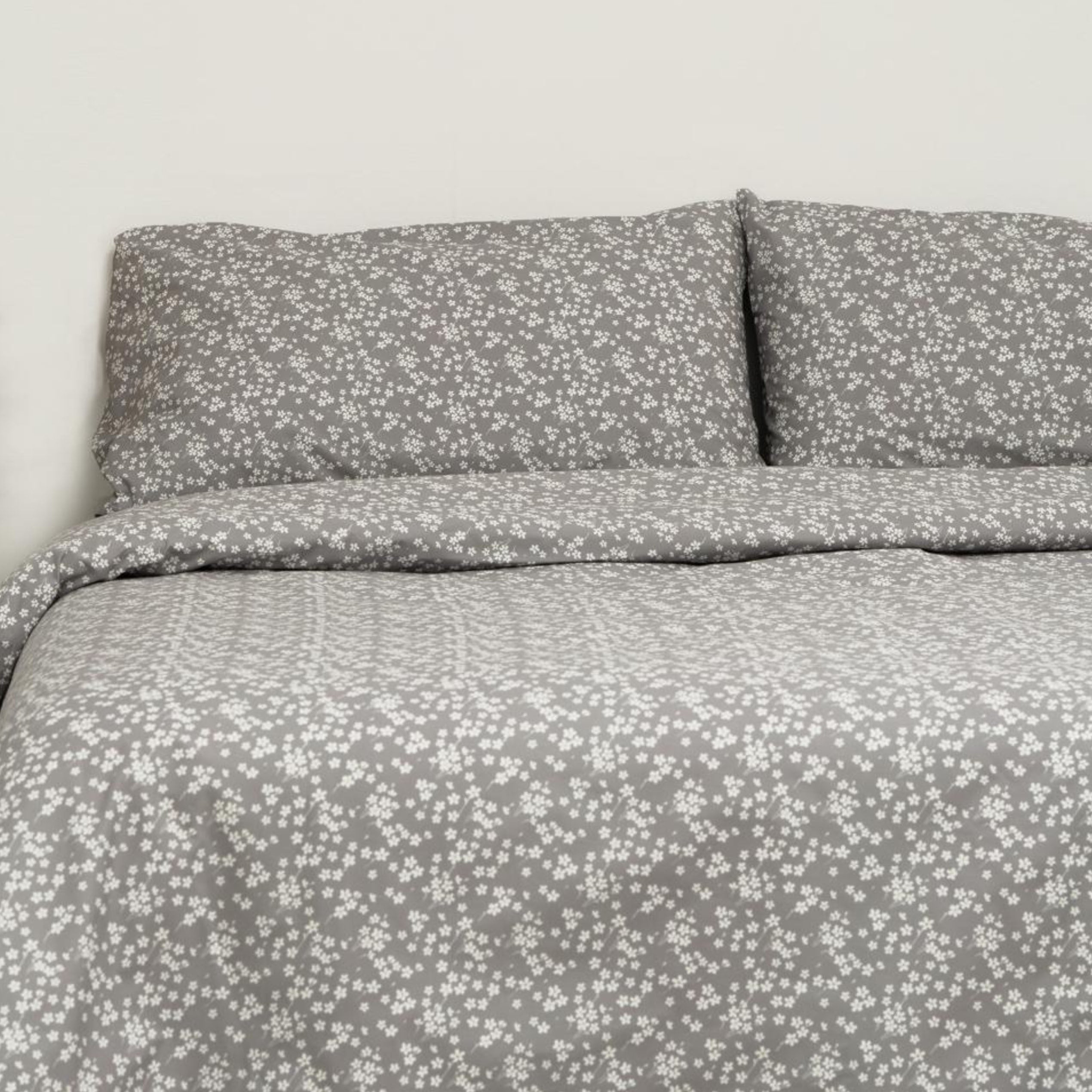 Set de funda nórdica en tejido de punto estampado y funda de almohada.