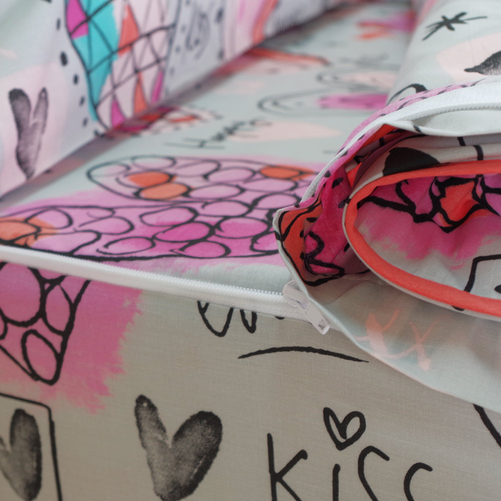 Esta funda de saco con diseño infantil es la mejor opción para darle vida y creatividad a tu cuarto. Además, gracias a su sistema blow-out (un fuelle de 14cm. todo alrededor) podrás descansar sin problemas y sentirte como en una nube.