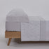 El set se compone de encimera, bajera adaptable (para colchones de hasta de 30cm. de altura y 190/200cm de largo) y funda de almohada con dos aperturas.