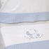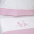 Set de tres piezas para cuna de bebé en algodón 100% con dibujo bordado, disponible en varios colores.