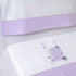 La primera cama de tu bebé se merece el mejor juego de sábanas. Enamórate de este set de tres piezas para cuna de bebé en color blanco y lila y bordados únicos que adornarán la cuna de tu hijo. El juego de sábanas cuenta con una textura suave para que tu bebé se sienta a gusto mientras duerme. Queremos cuidar su piel y por eso, hemos apostado por los mejores materiales que te garantizan la mayor calidad. Tu bebé se merece lo mejor.