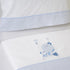 Set de tres piezas para cuna de bebé en algodón 100% con dibujo bordado, disponible en varios colores.