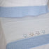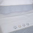Set de tres piezas para cuna de bebé en algodón 100% con dibujo bordado en el centro, disponible en dos colores, aplique en embozo a contraste con estrellitas estampadas.