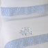 Set de tres piezas para cuna de bebé en coralina con dibujo bordado y acabado con popelín estampado de estrellitas, disponible en varios colores.