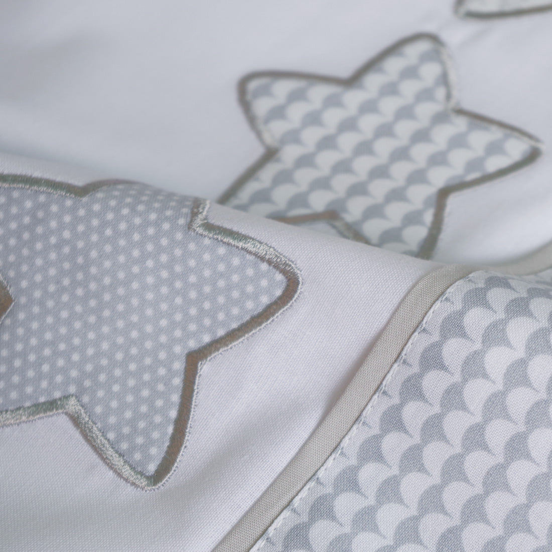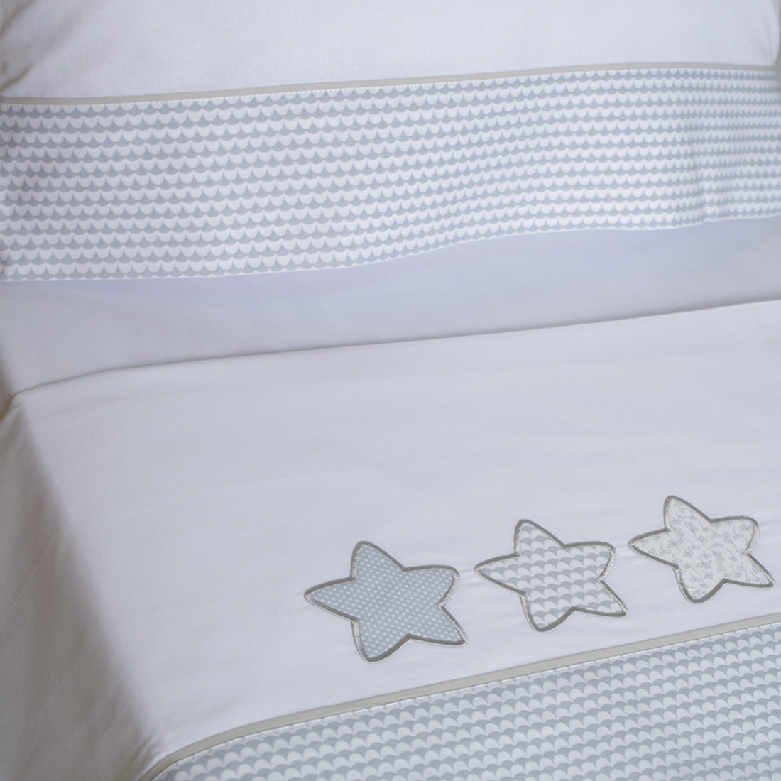 La primera cama de tu bebé se merece el mejor juego de sábanas. Enamórate de este set de tres piezas para cuna de bebé en color blanco y gris y bordados únicos que adornarán la cuna de tu hijo. El juego de sábanas cuenta con una textura suave para que tu bebé se sienta a gusto mientras duerme. Queremos cuidar su piel y por eso, hemos apostado por los mejores materiales que te garantizan la mayor calidad. Tu bebé se merece lo mejor.