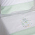 La primera cama de tu bebé se merece el mejor juego de sábanas. Enamórate de este set de tres piezas para cuna de bebé en color blanco y verde y bordados únicos que adornarán la cuna de tu hijo. El juego de sábanas cuenta con una textura suave para que tu bebé se sienta a gusto mientras duerme. Queremos cuidar su piel y por eso, hemos apostado por los mejores materiales que te garantizan la mayor calidad. Tu bebé se merece lo mejor.