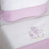 Set de tres piezas para cuna de bebé con dibujo bordado, disponible en varios colores.