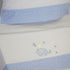 Set de tres piezas para cuna de bebé de franela con dibujo bordado, disponible en varios colores.