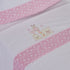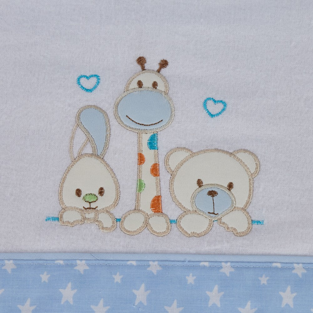 Set de tres piezas para cuna de bebé de franela con dibujo bordado, disponible en varios colores.