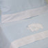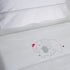 Set de tres piezas para cuna de bebé de franela con dibujo bordado, disponible en varios colores.