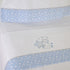 Set de tres piezas para cuna de bebé de franela con dibujo bordado, disponible en varios colores.