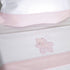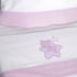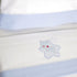 Set de tres piezas para cuna de bebé de franela con dibujo bordado, disponible en varios colores.