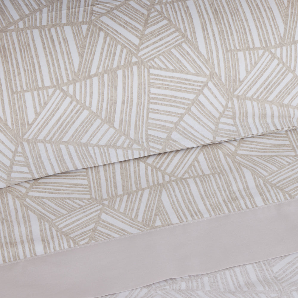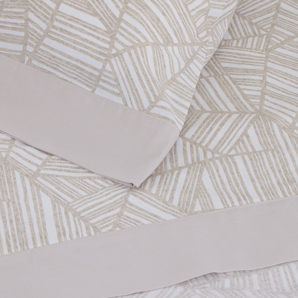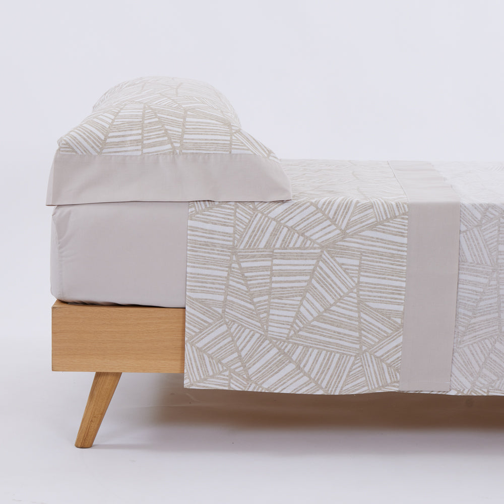 Un juego de sábanas de lo más completo para vestir tu cama por completo y darle un aspecto completamente fresco a tu dormitorio. Con un fondo liso y encimera estampada, este juego de sábanas irá perfecto con habitaciones tanto de colores cálidos como con otros más oscuros o fuertes.
