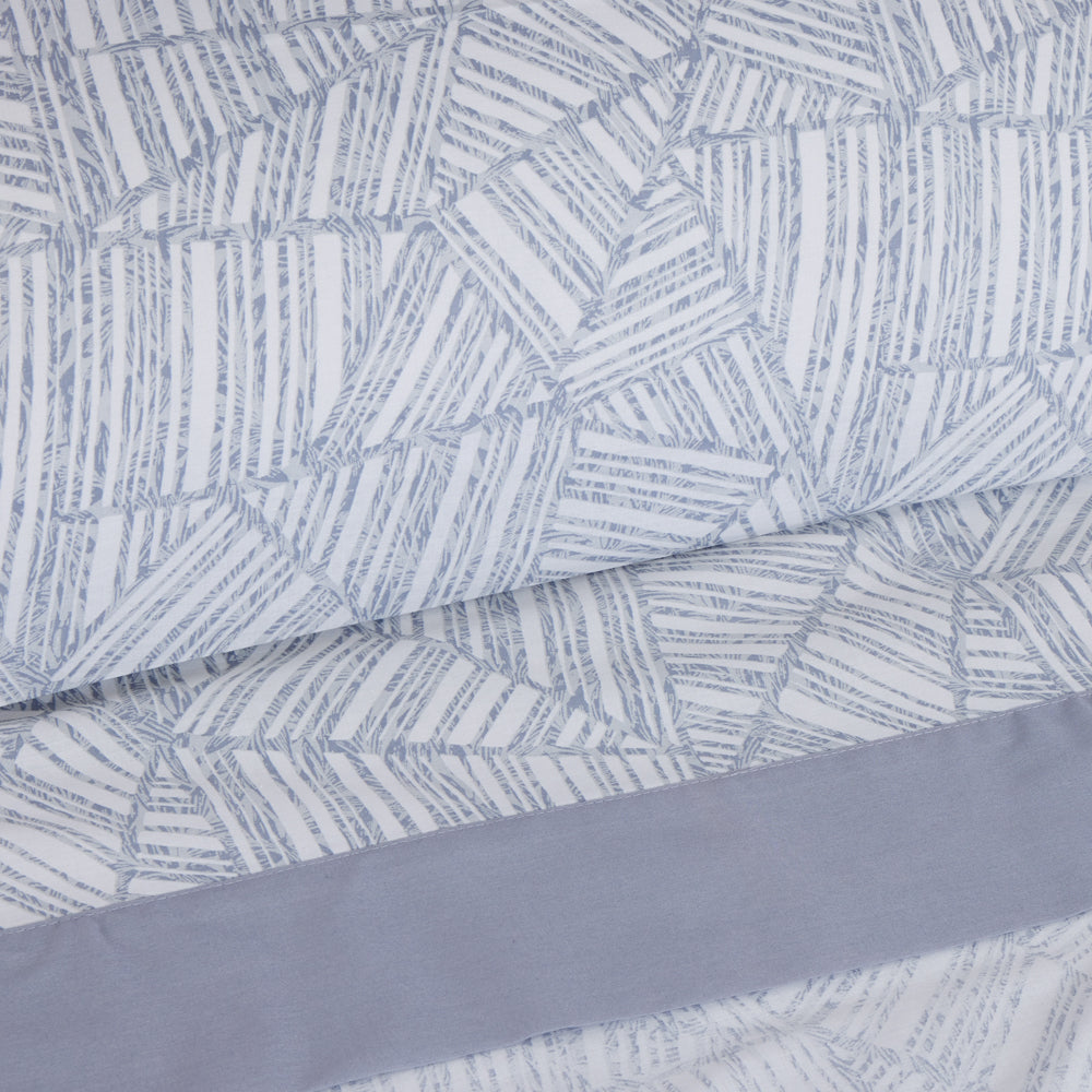 El set se compone de sábana encimera estampada, bajera adaptable lisa y funda de almohada estampada con dos aperturas.
