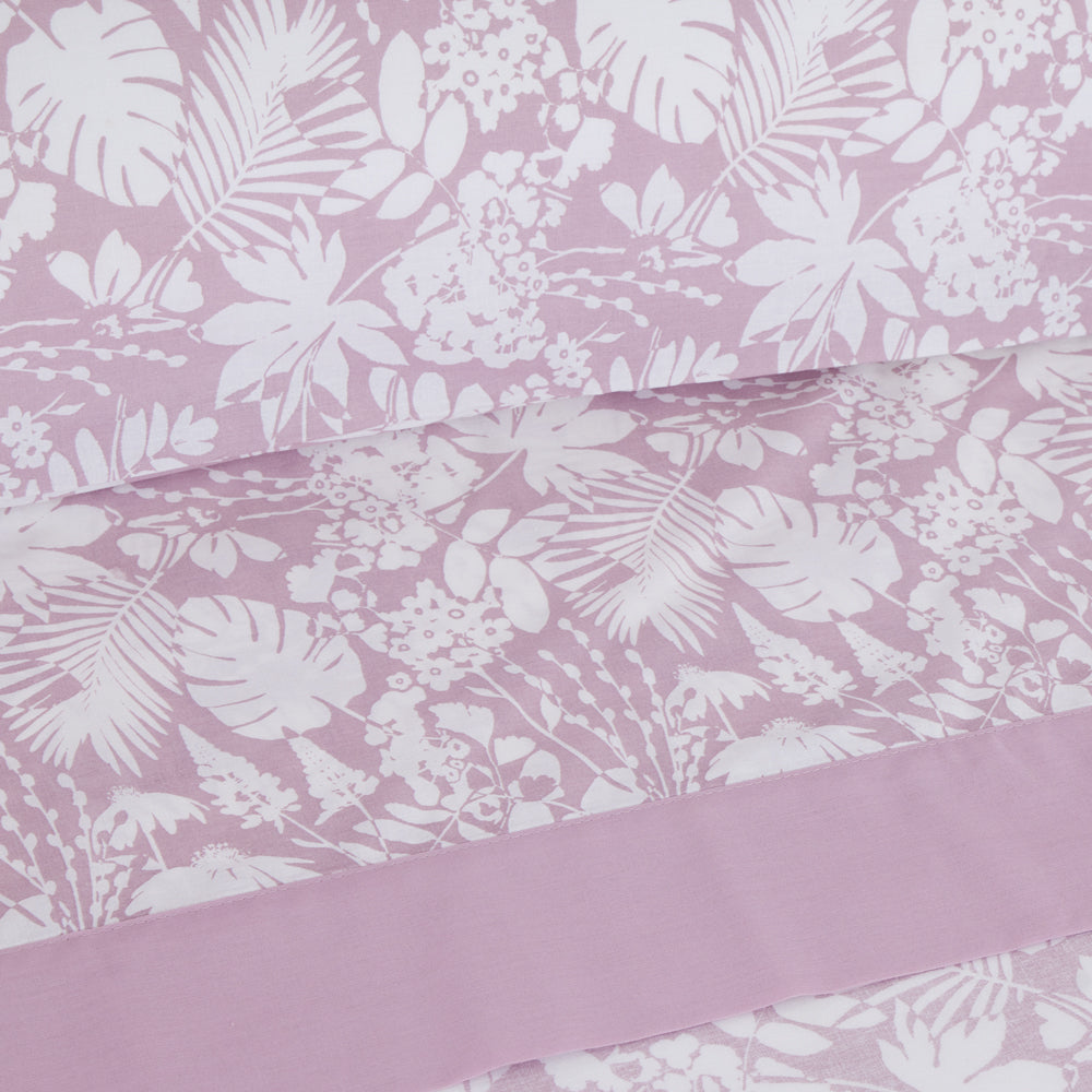 Un juego de sábanas de lo más completo para vestir tu cama por completo y darle un aspecto completamente fresco a tu dormitorio. Con un fondo liso y encimera estampada, este juego de sábanas irá perfecto con habitaciones tanto de colores cálidos como con otros más oscuros o fuertes.