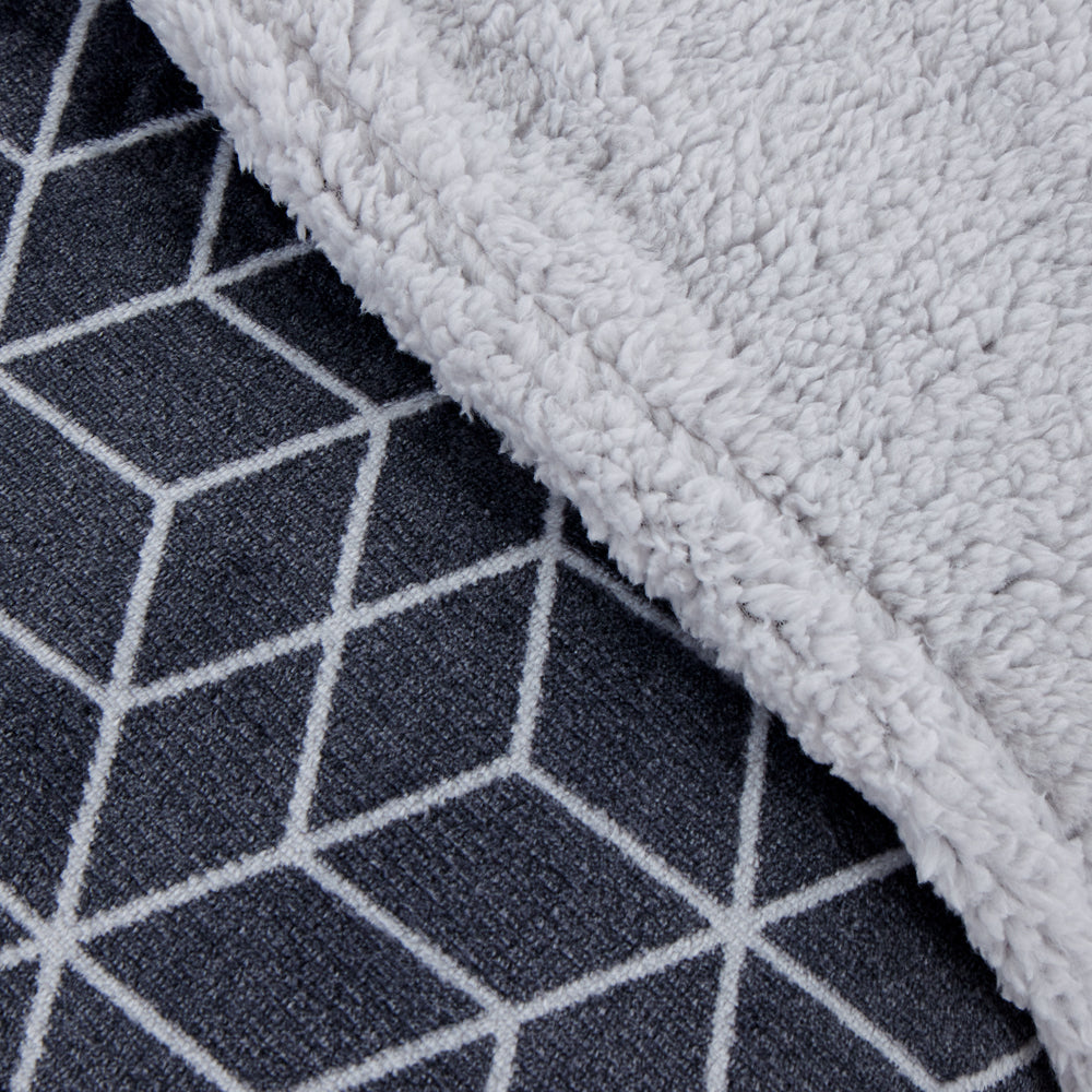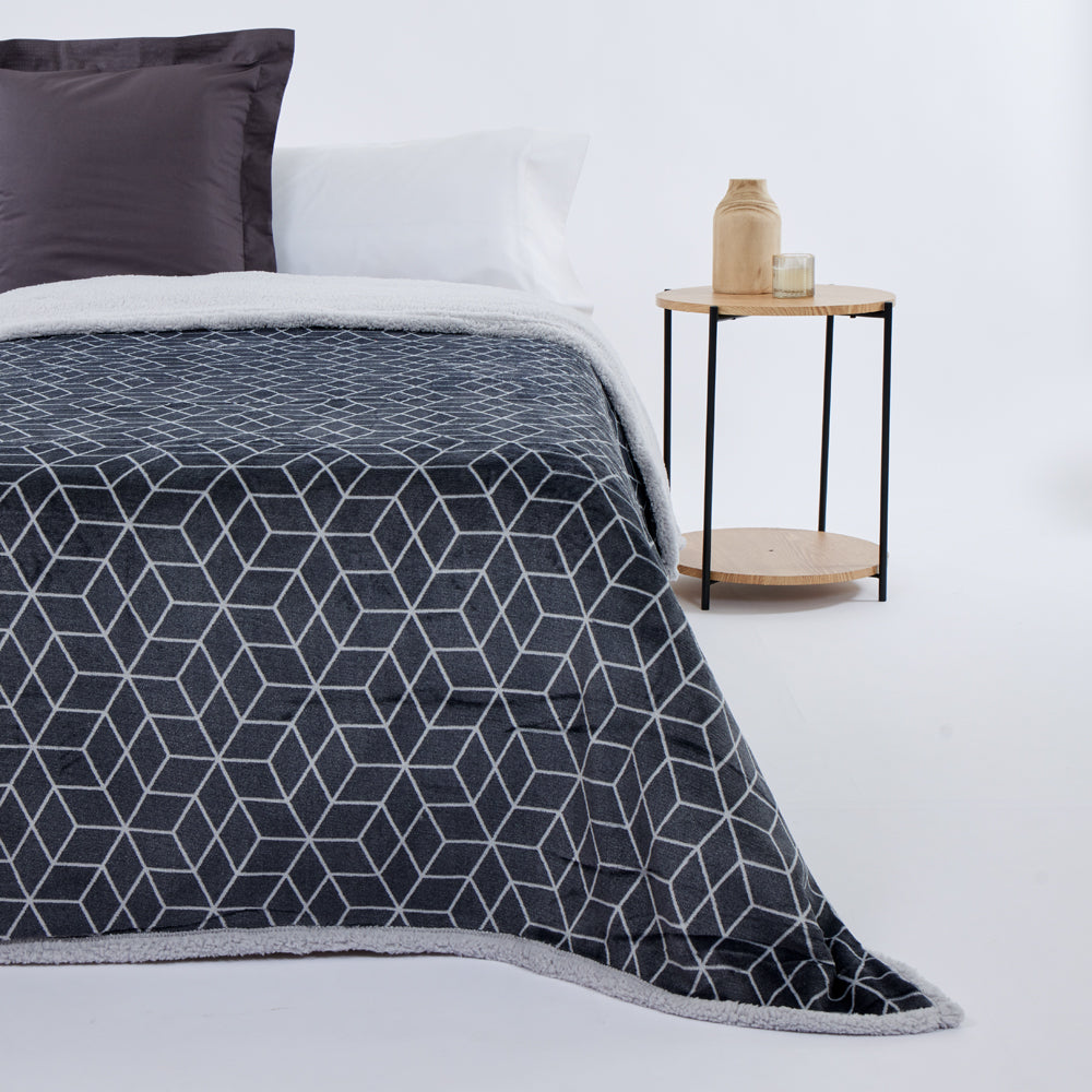 Manta de sedalina estampada y reverso de borreguito blanco.