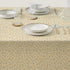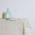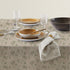 Mantel estampado, tratado con Teflón creando una barrera de protección que repele los líquidos y evita la formación de manchas.