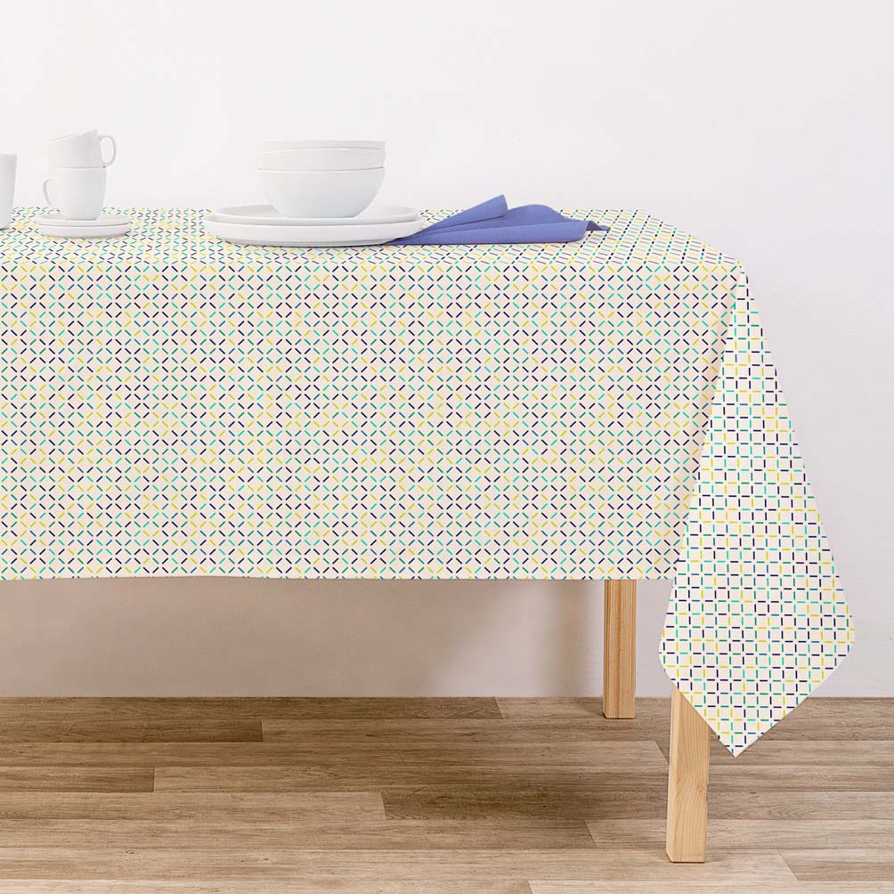 Renueva la imagen del comedor o cocina de tu casa y sorprende a tus invitados con este bonito mantel. ¡Tus platos sobre la mesa parecerán ahora como recién salidos de la cocina del mejor restaurante de diseño! También es perfecto como mantel de picnic: sus dibujos invitan a comer como en un cumpleaños y no imaginamos celebrando cualquier evento y reunión, mejor si además es sobre este colorido mantel.