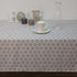Mantel estampado, tratado con Teflón creando una barrera de protección que repele los líquidos y evita la formación de manchas.