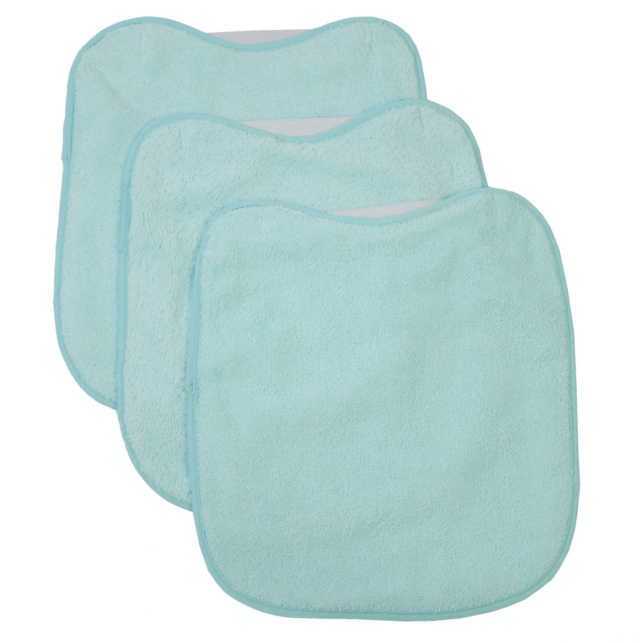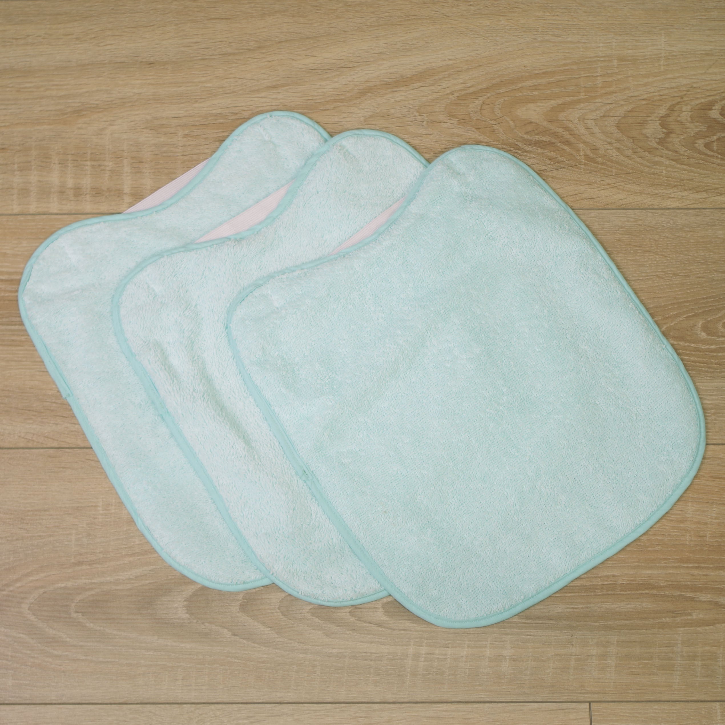 Pack de 3 baberos de rizo color verde, reverso con plástico y con elástico al cuello.