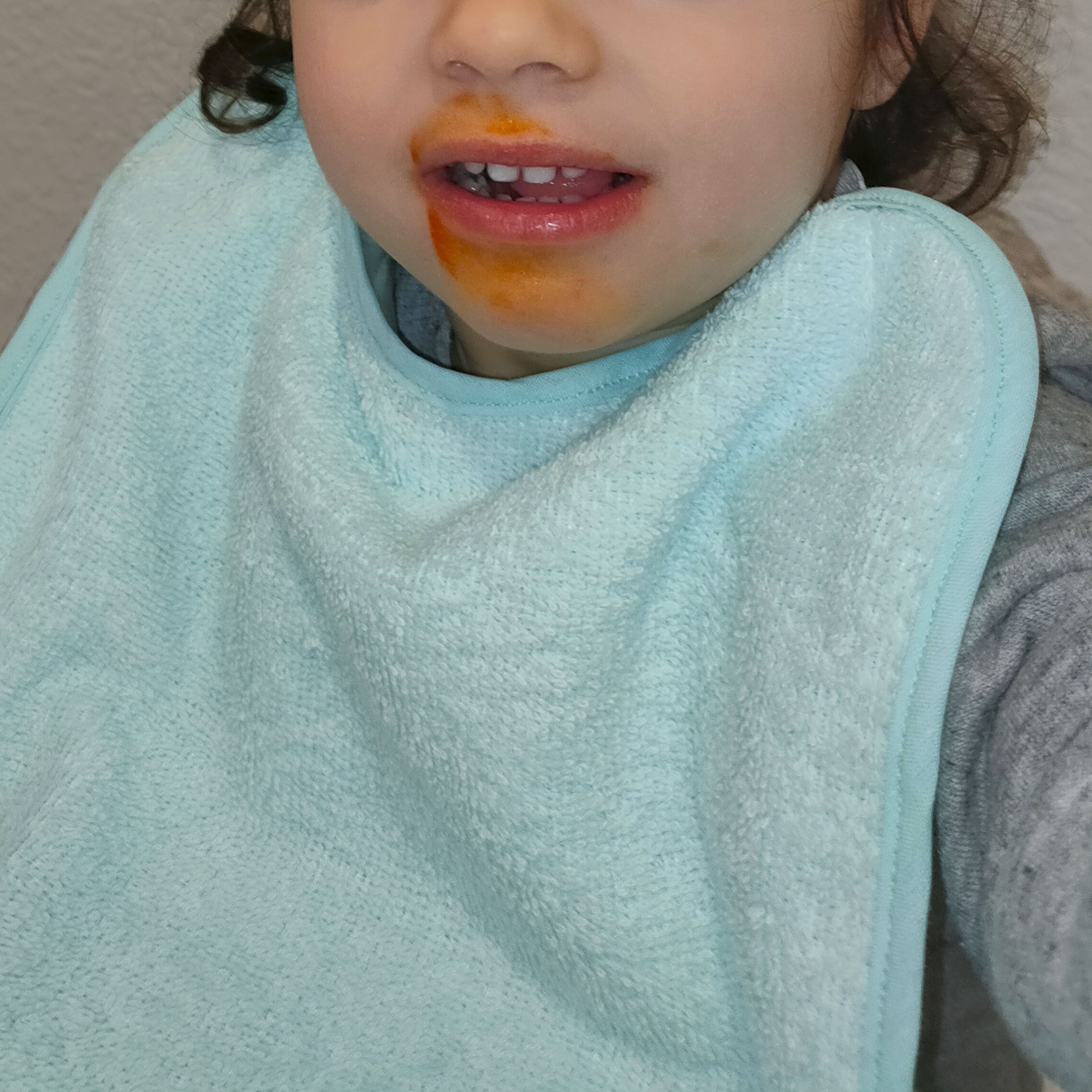 Lavables, exterior de rizo de máxima calidad y reverso impermeable, baberos con goma al cuello.