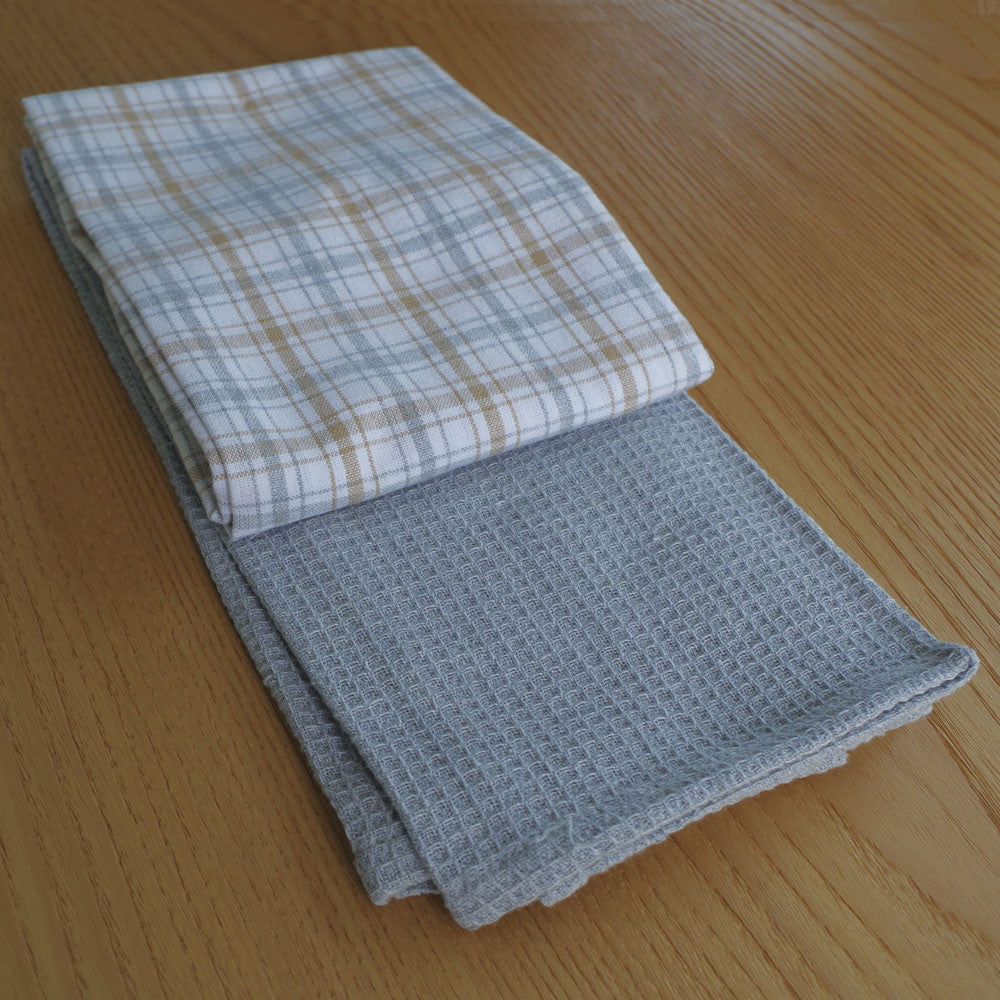 Pack de 2 unidades de paños de cocina en loneta COTTON color blanco y gris.