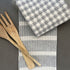 Pack de 2 unidades de paños de cocina en loneta COTTON color blanco y gris plomo con verde.