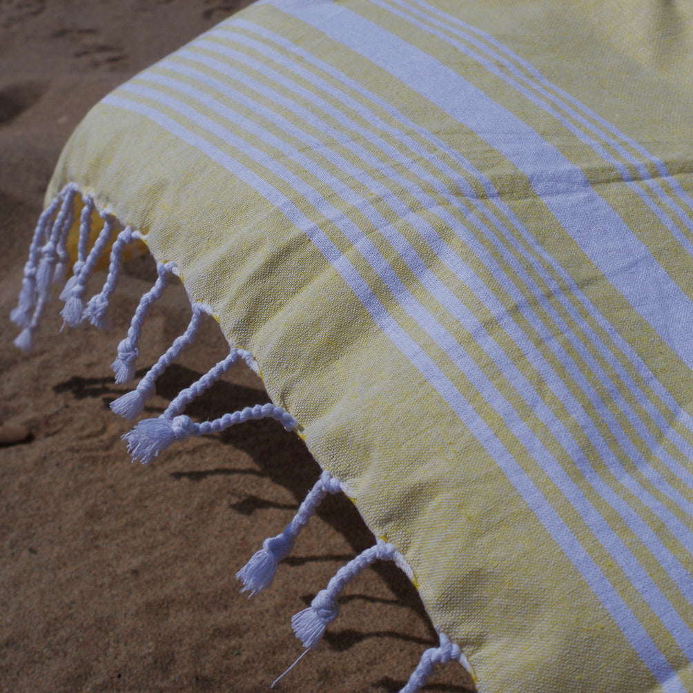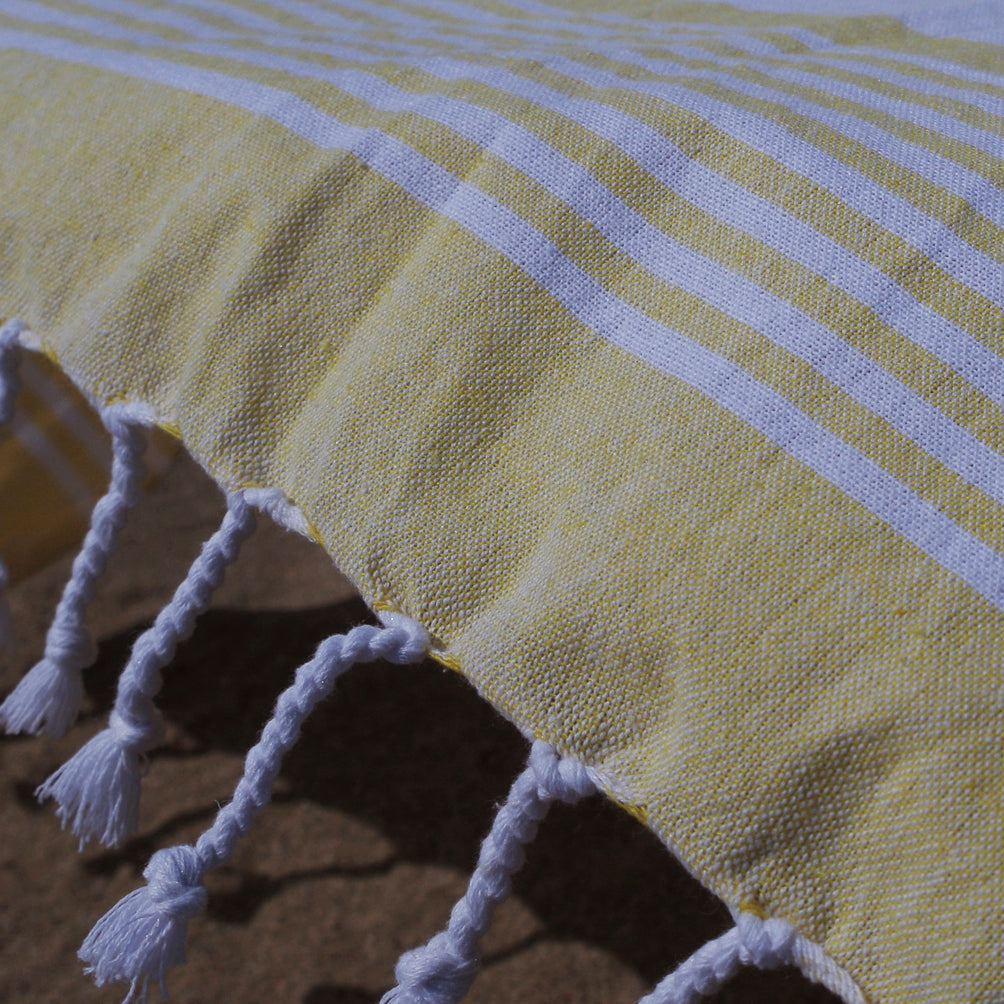 Pareo liso con detalle de rayas y flecos en los extremos.