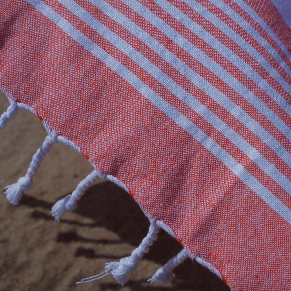 Pareo liso con detalle de rayas y flecos en los extremos.
