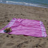 Pareo grande liso con detalle de rayas y flecos en los extremos.