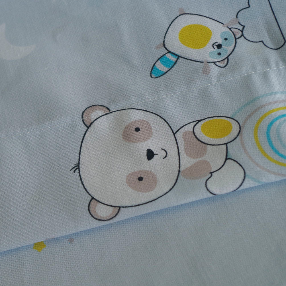 Sábana encimera para la camita de la guardería con estampado infantil.