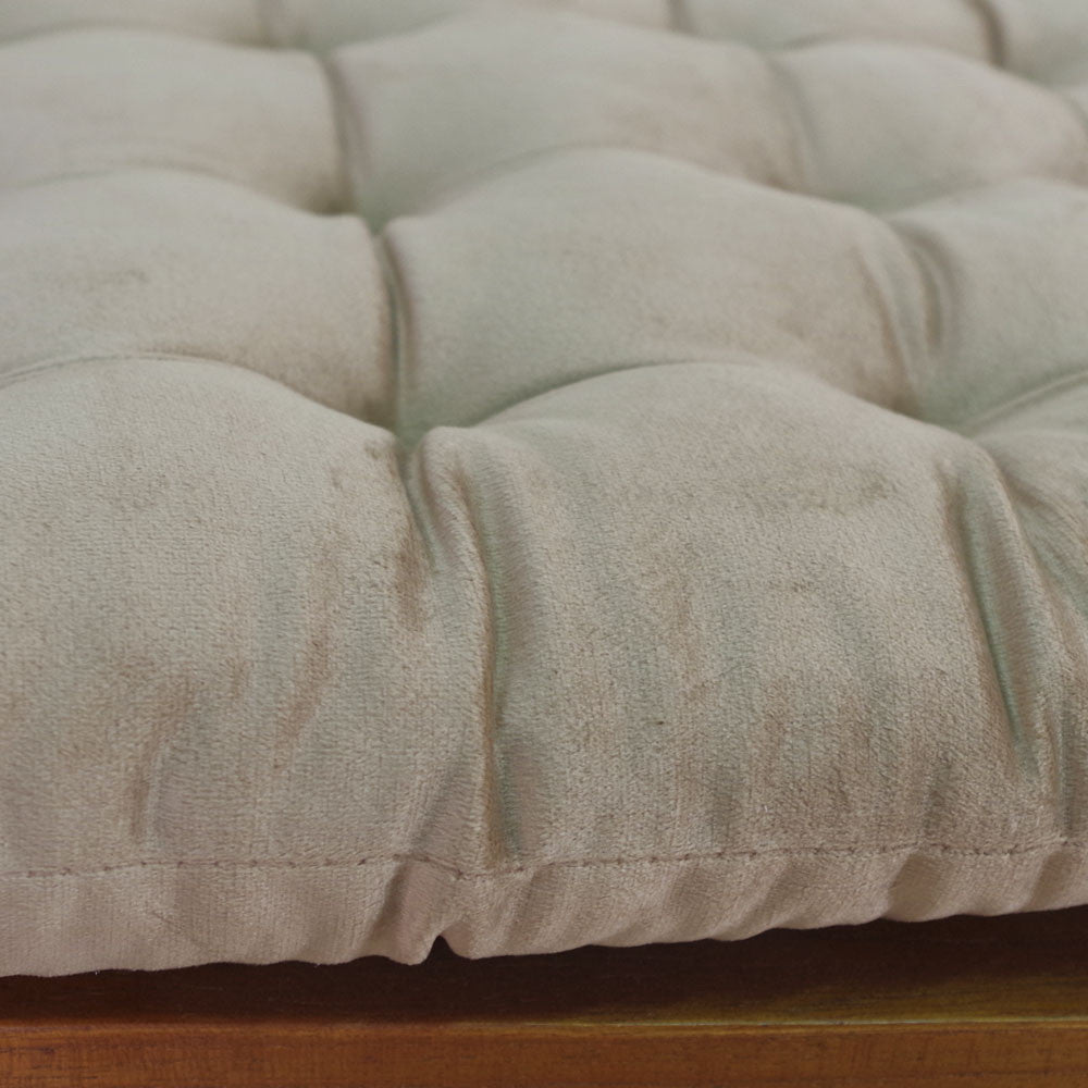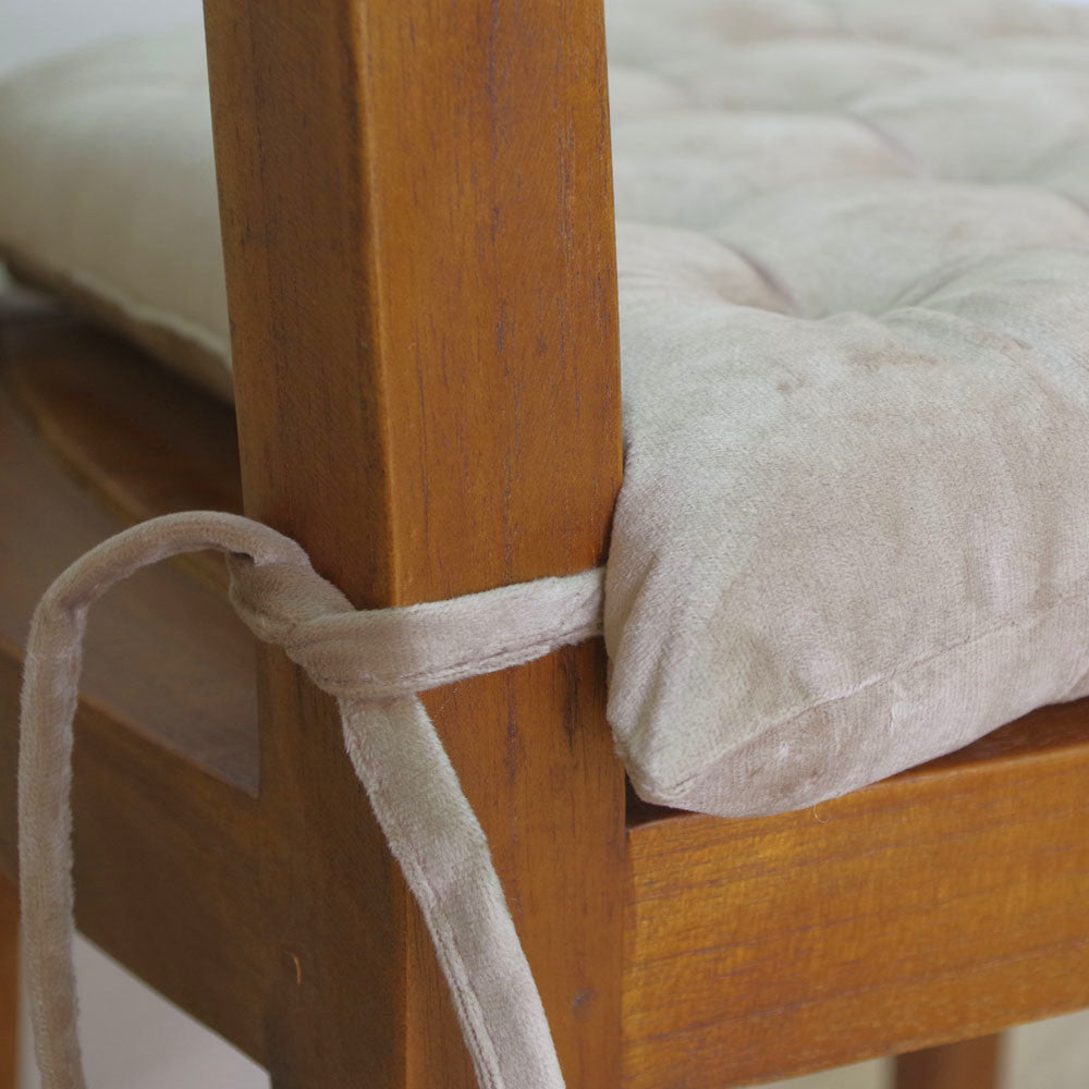 Su confección en velour 100% poliéster garantiza una alta durabilidad y su relleno de fibra le aportan el confort que buscas. Además, cuentan con lazos en las esquinas que te permiten fijarlos a las sillas.