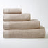 Toalla de rizo con hilatura de 2 cabos con textura grano de arroz y cenefa al tono.